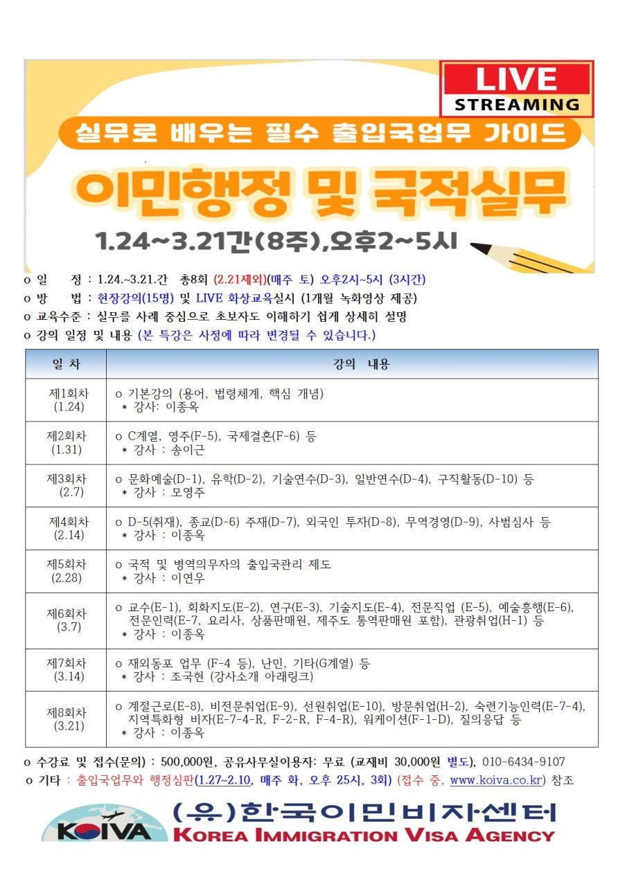 [특강 안내] o 주 제: 이민행정…